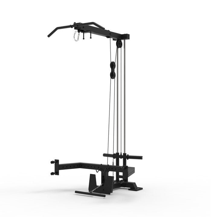 • Plate-Loaded Lat Pulldown & Low Row: This pulley system easily attaches to your power rack to add cable exercises, including lat pull-down variations and seated rows.