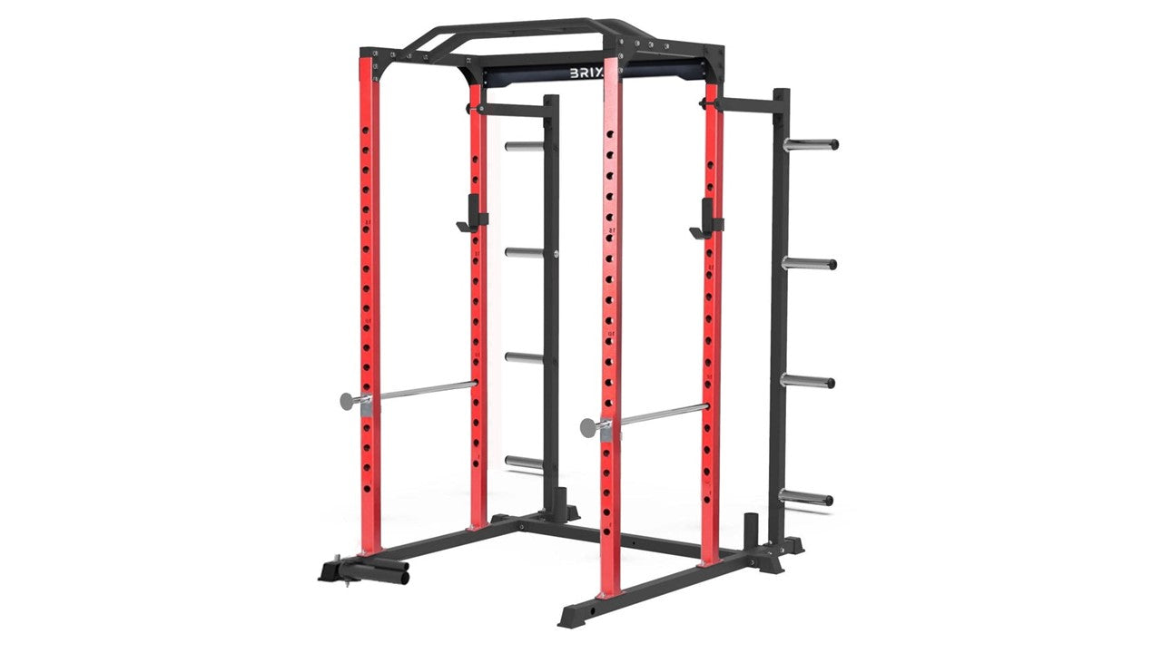 Extended safety arms provide support for additional barbells and exercises like rack pulls. The Zeus Power Rack is available in two color options: metallic black and red, allowing you to personalize its appearance.