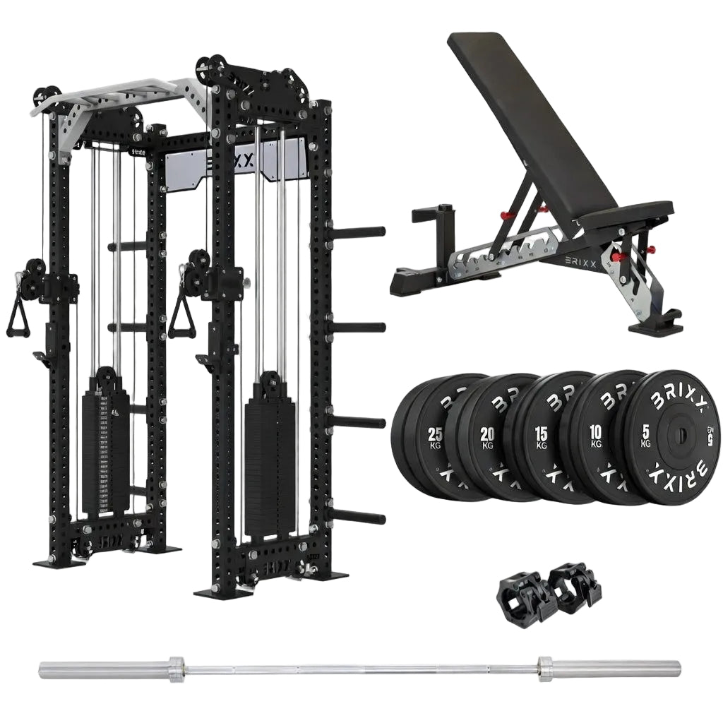 The Apollo Series by BRIXX® is a premium all-in-one strength package designed for commercial facilities and serious training spaces, combining functional training, free weights, and bench training in one complete setup. Package Includes: