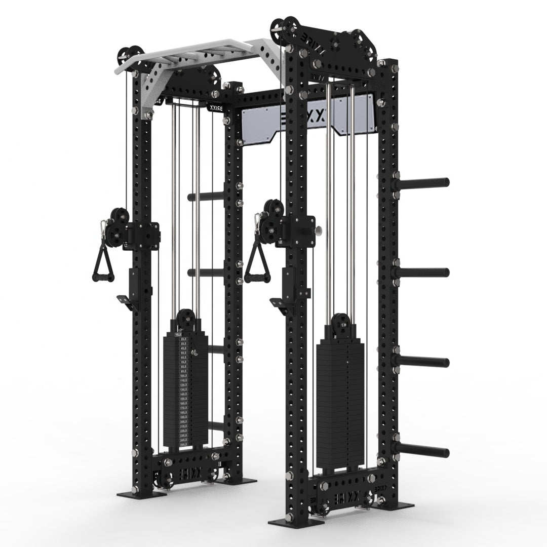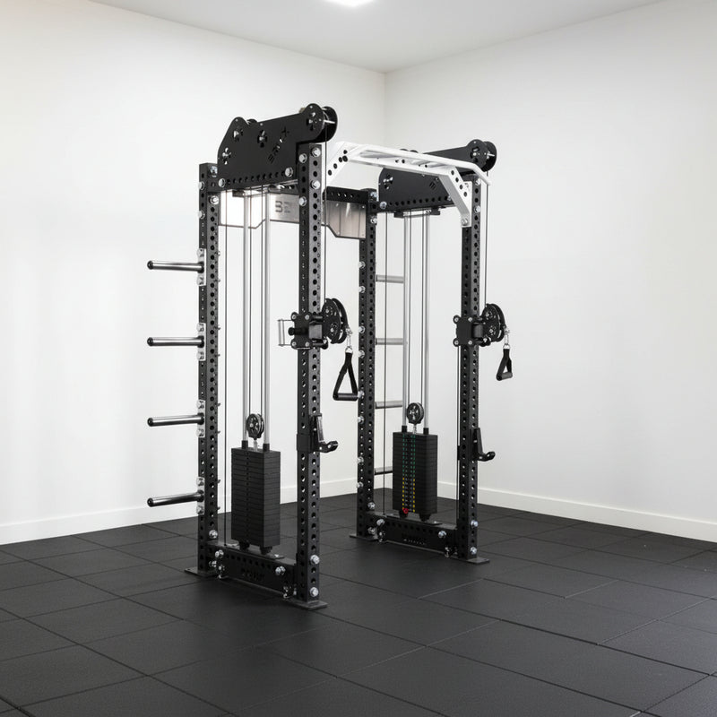Meet the Apollo 3000 Functional Trainer: This all-in-one unit features dual, independently moving 90 kg weight stacks, enabling seamless full-body resistance training. Perform functional strength exercises and barbell lifts with the included J-Hooks and Safety Spotter Arms. The integrated pull-up bar allows upper-body workouts, while built-in plate storage keeps your gym organized and clutter-free.